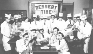 There are pictures of typing, shorthand, cosmetology, and homemaking classes for girls. The boys have electricity, wood shop and leather work classes. I mentioned for the 1953 there was a boys’ cooking class. Here is the picture for 1954.