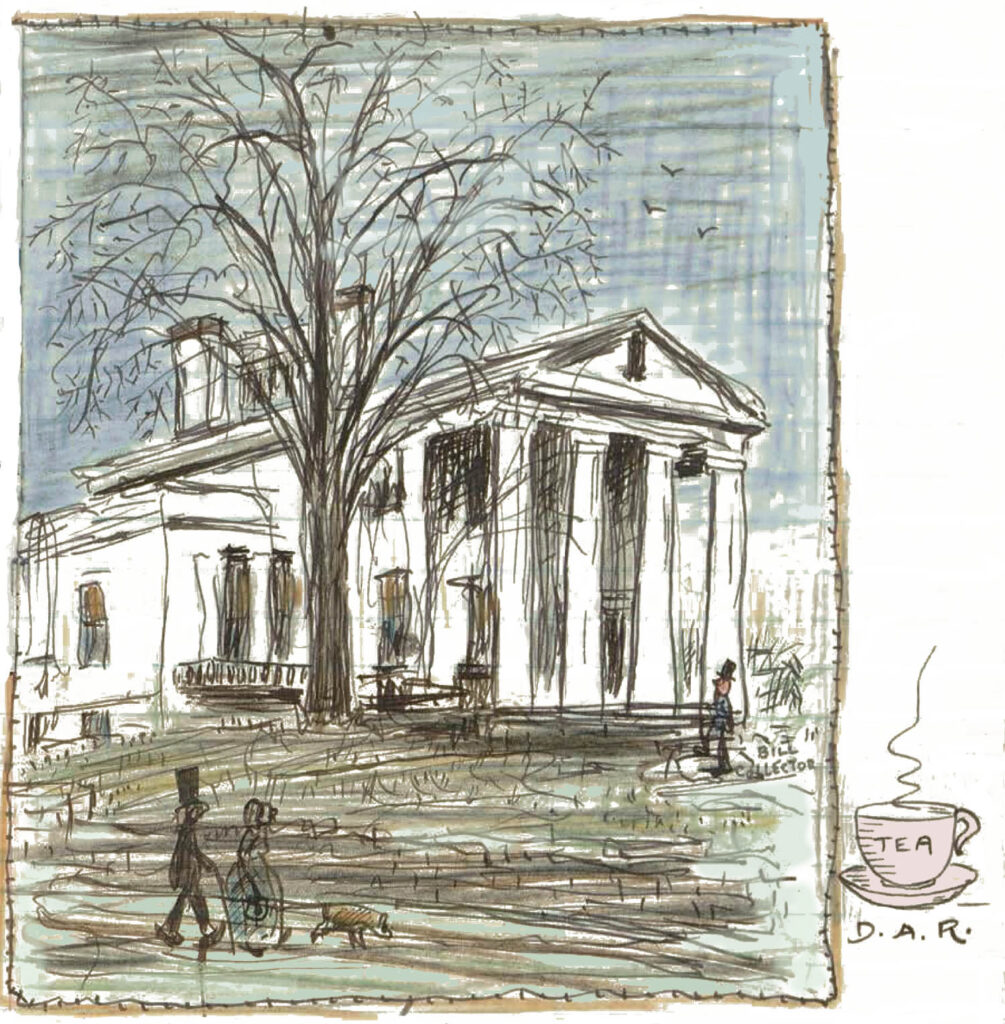 This stately old mansion on a knoll at the corner of Livingston Park and Troup Street was built after 1834 for Hervey Ely, one of the notable leaders in early Rochester. The house was later owned successively by William Kidd, Aristarchus Champion, Jonathan Watson, and Dr. Howard Osgood. It is now the home of the Daughters of the American Revolution. The plan consists of a central two story building embellished with a portico of four Doric columns across the front. There are subordinated one-story wings at right angles to the axis of the two-story building. This type of plan, developed by the Greek Revival architects, always makes an excellent composition because the one-story wings give scale and gradually lead up to the two-story central mass with its great portico and pediment. S. P. Hasting was the architect. He was a faithful follower of classic ideals.