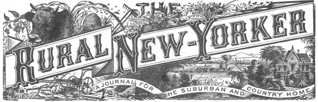I made this web page with links to issues of the Rural New Yorker newspaper. It was published in Rochester from 1850 to 1878. After that it was published in New York City. The links are from the whole 115 year run of the newspaper. Cornell University scanned whole volumes. Rochester Public Library scanned single issues from 1861 to 1865. Then there are a few other random issues.