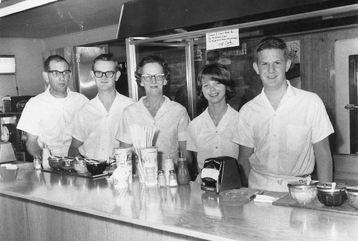 Shown behind counter are Larry’s Bar-B-Q, Horseheads; Larry Halsey, David Halsey, Ruth Halsey, Linda Comfort and Richard Halsey