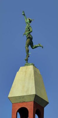 For 78 years Mercury watched the changing face of Rochester. He saw the canal boats depart from the Clinton Ditch and then heard the screech of subway trains in its bed. He sew the horse traffic yield to the darting motor cars In the streets below. In a new order, he peered, a bit enviously, at the machines that whirred like great birds above his head.