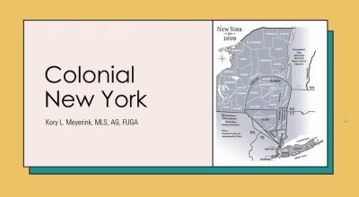 The presenter is Kory Meyerink, a professional genealogist, who is accredited in four areas (Germany, Midwest, Eastern States and New England U.S.). He specializes in the colonial northeast and tracing the origins of German and Dutch immigrants. His presentation runs about 90 minutes. I’m sure it will be of help if you have colonial NY ancestors.