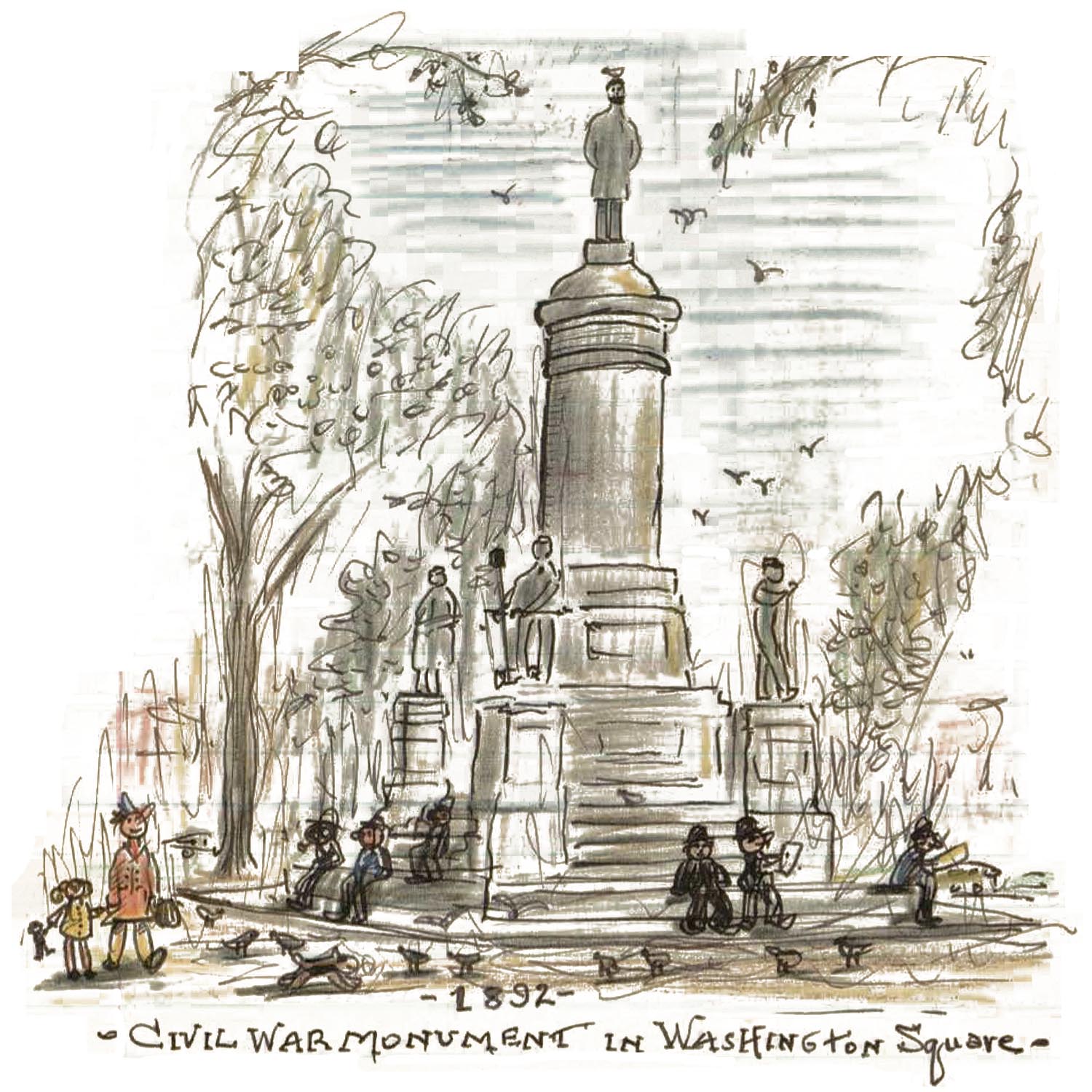 Abraham Lincoln at the top. Dedicated on Memorial Day, 1892, in the presence of President Benjamin Harrison, Gov. Roswell P. Flower and Frederick Douglass. There was a crowd of 10,000. Many wonder today why it is called “Washington Square” when the only monument is for Lincoln. It was called “Johnson Square” in the early days after Elisha Johnson who gave the lands for the square. That’s what it should be today. George Washington never slept there. Bums sleep there on hot nights in the summertime. Here is what the tablet reads: “To those who faithful unto death, gave their lives for the country” “1861 – 1865.” And the words of Lincoln: “We here highly resolve that the dead shall not have died in vain.” The sculptor and designer was Leonard W. Volk. Mr. Wilkinson shook the hands of the above noted gents at a reception in the Powers Building that day.