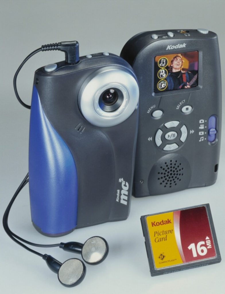 In the spring of 2001 Kodak introduced an innovative device that was ahead of it’s time. It was called the Kodak MC3 because it had three functions. It was a camera, video recorder and MP3 player all in one. There were two versions, one with a 16mb card ($229) and one with a 64mb card ($299).