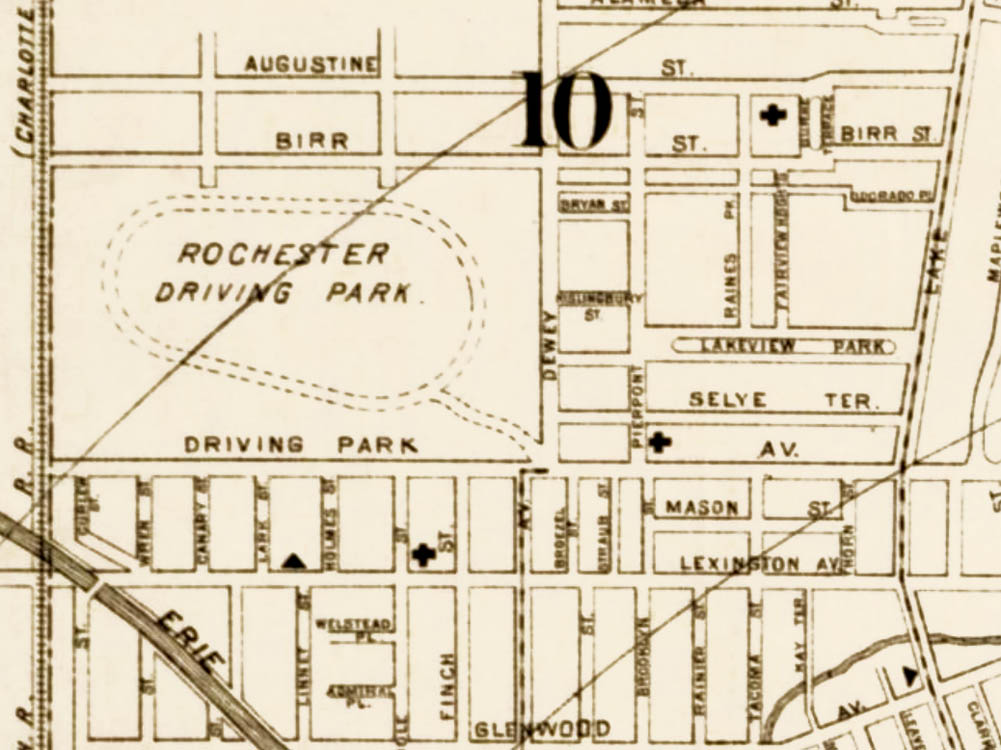 For at least 130 years there has been a “jog” on Dewey Avenue at Driving Park Avenue. If you wanted to continue on Dewey going north of Driving Park you had to turn right and then in 300 feet or so make a left turn and continue going north (see the map from 1899). The southern part of Dewey was originally known as Thrush Street but the name was changed in honor of Admiral Dewey after winning the Battle of Manila Bay during the Spanish-American War.